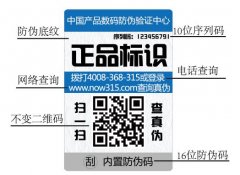 不干膠防偽標簽:實用特性凸顯的優(yōu)勢作用 08-211、請刮開(或揭開)產品上的防偽標識